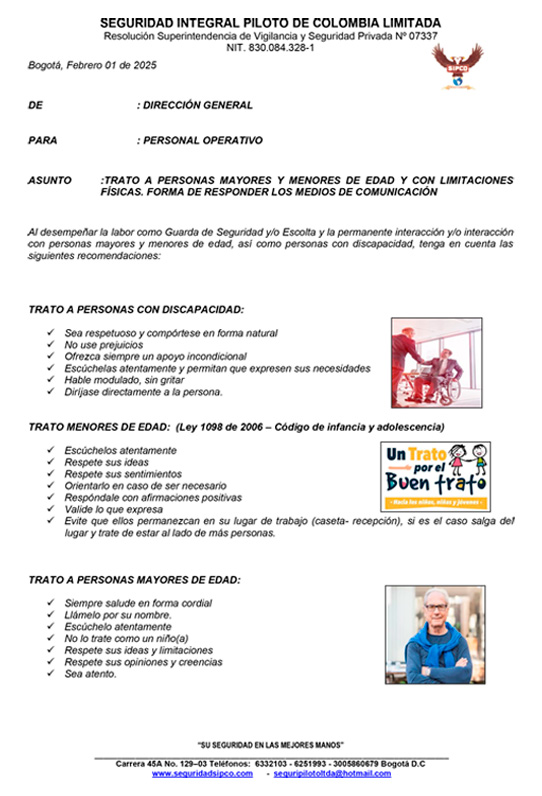 Trato a personas mayores y menores de edad, y con limitaciones físicas. Forma de responder los medios de comunicación
